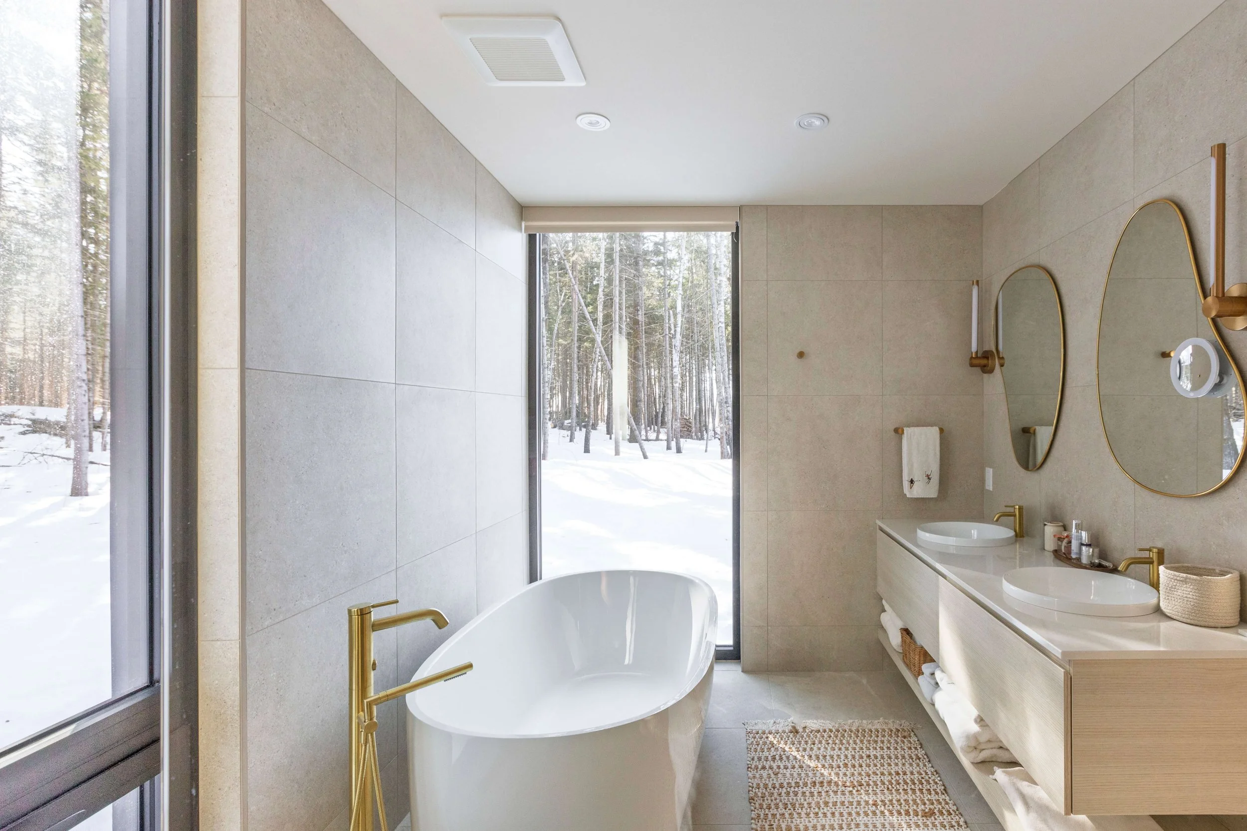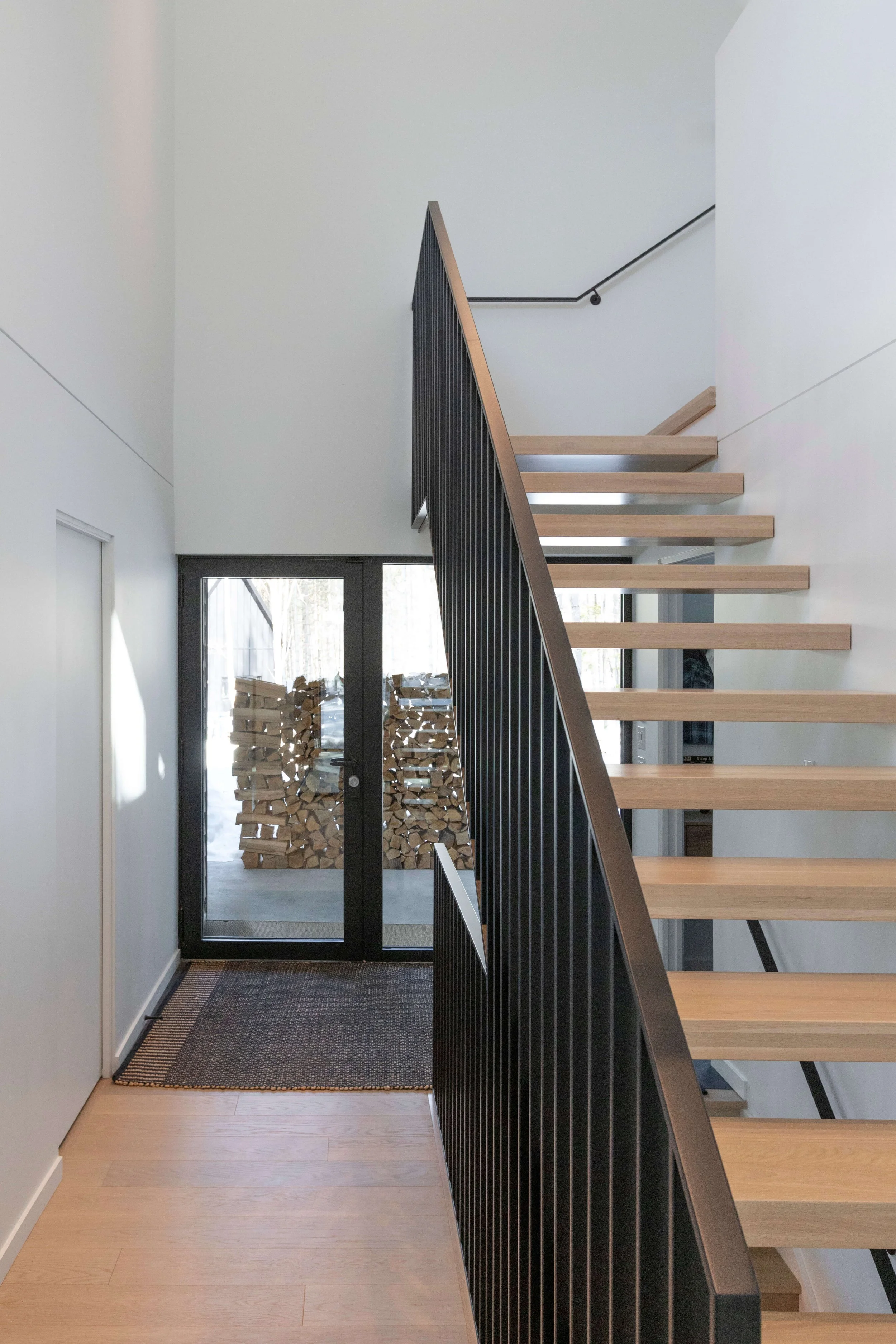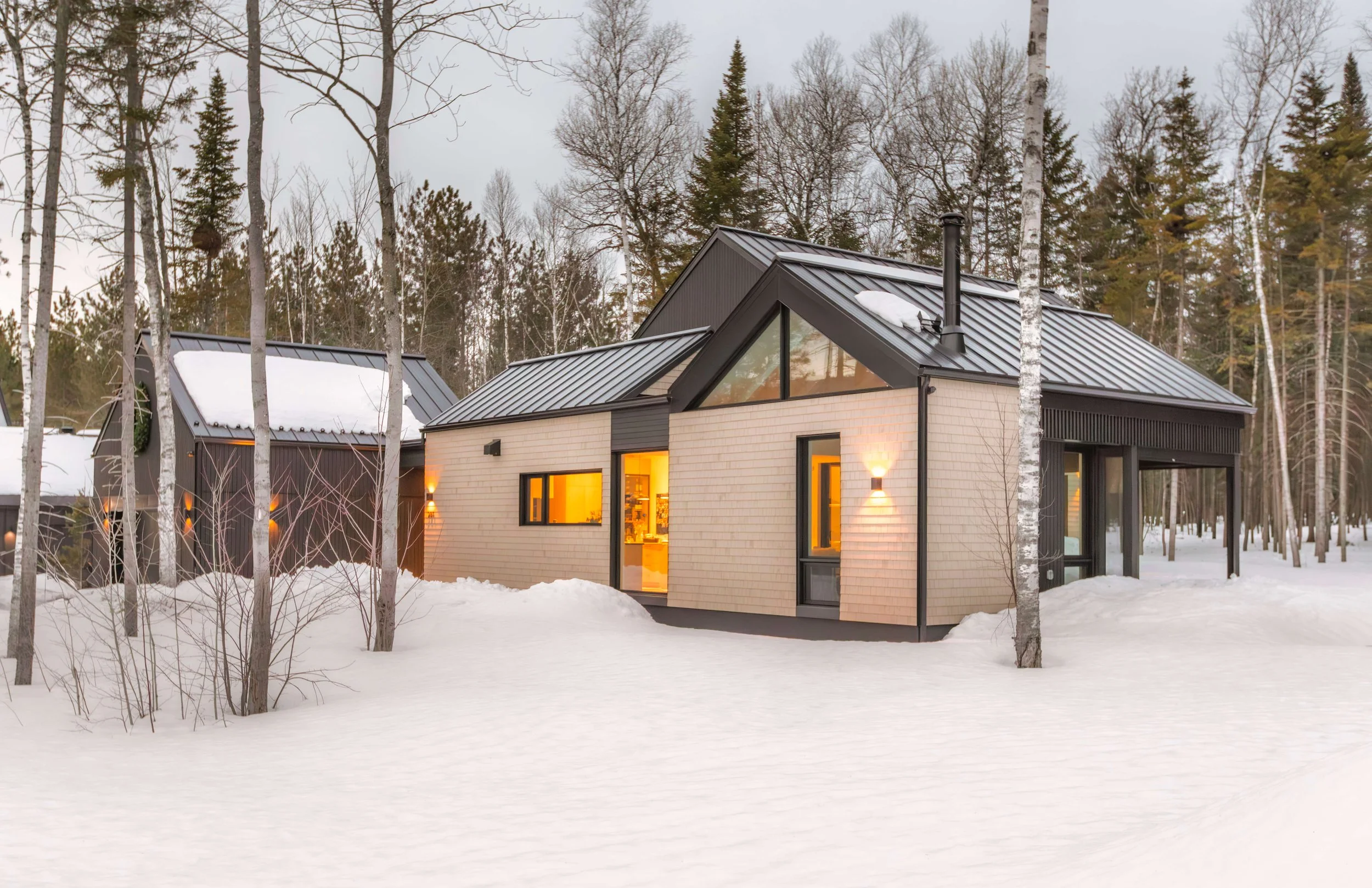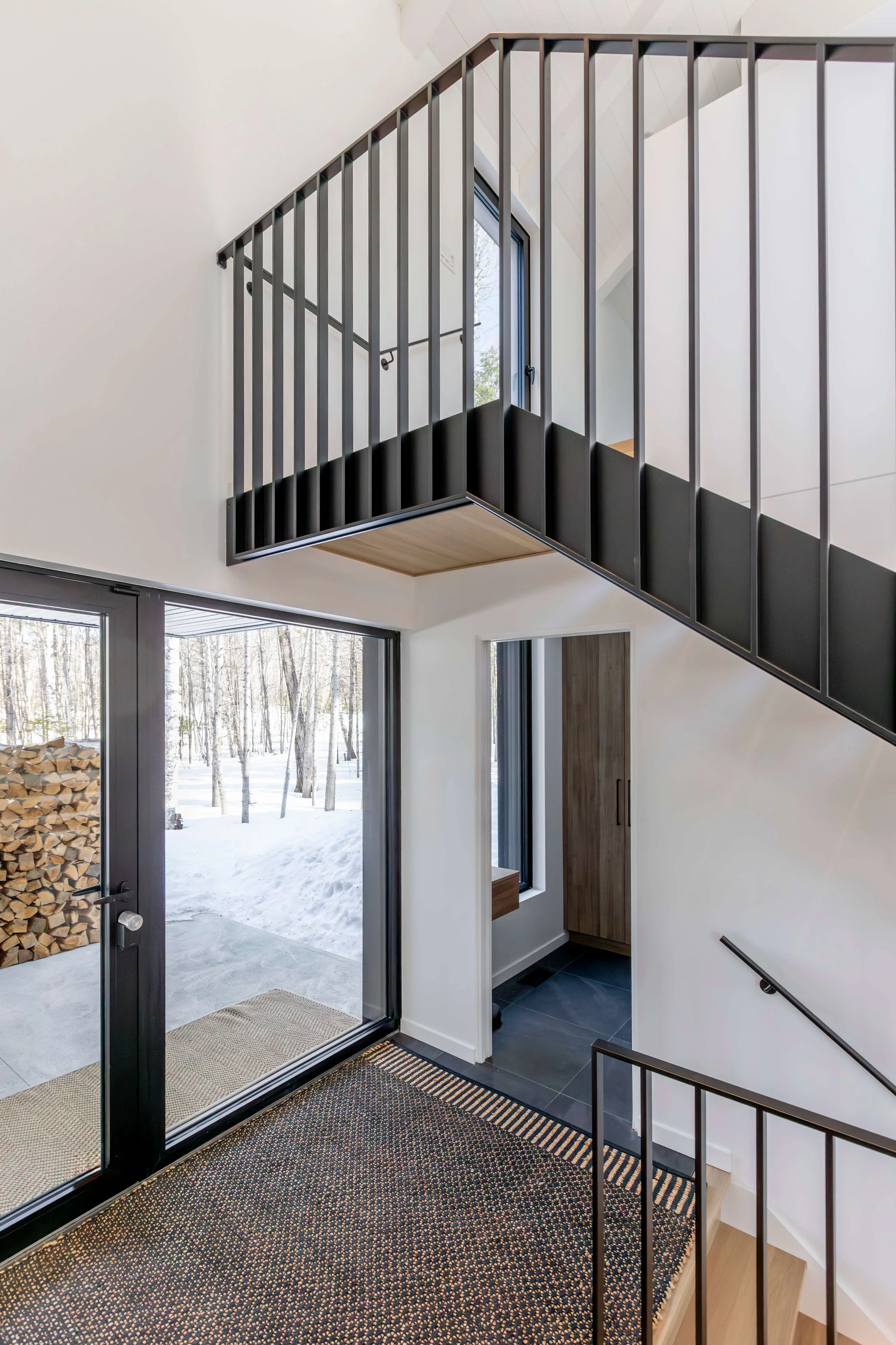 Au cœur d’un décor forestier paisible, la maison Volume Nordique se distingue par l’équilibre subtil entre modernité et chaleur. Sa silhouette architecturale est composée de volumes clairs et distincts, mis en dialogue par une circulation fluide et un garage détaché discret mais fonctionnel.